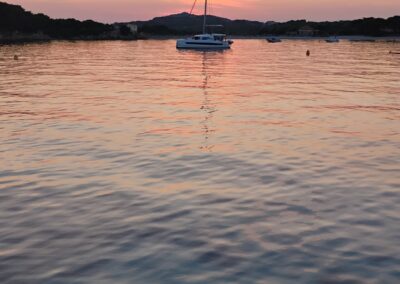 Immagina: svegliarti con il suono delle onde, scegliere insieme dove andare guardando il vento, vivere ogni tramonto come fosse il primo. Con le famiglie trasformo il mare in casa sicura dove i bambini scoprono libertà e meraviglia. Con gruppi di amici creo l’equilibrio perfetto tra avventura e relax, navigazione e festa. Organizzo flottiglie per chi vuole condividere la passione della vela con altri equipaggi affini, creando una community temporanea che naviga insieme ma mantiene l’autonomia di ogni gruppo.